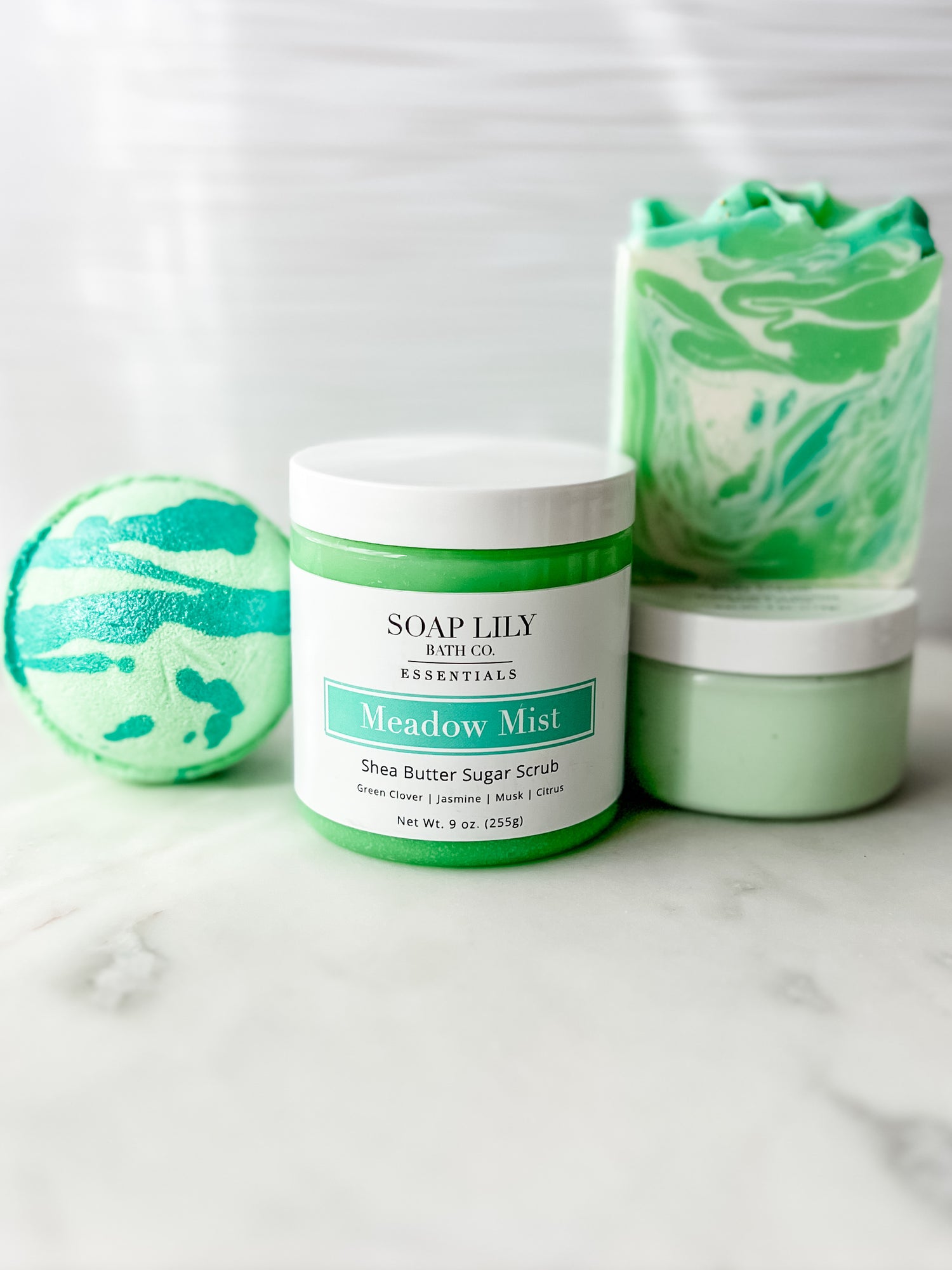 Soap Lily Bath Co. uses simple, natural ingredients, free from harsh chemicals and synthetic additives. Specific formulations may include shea butter, aloe, natural oils, botanical infusions, and more.